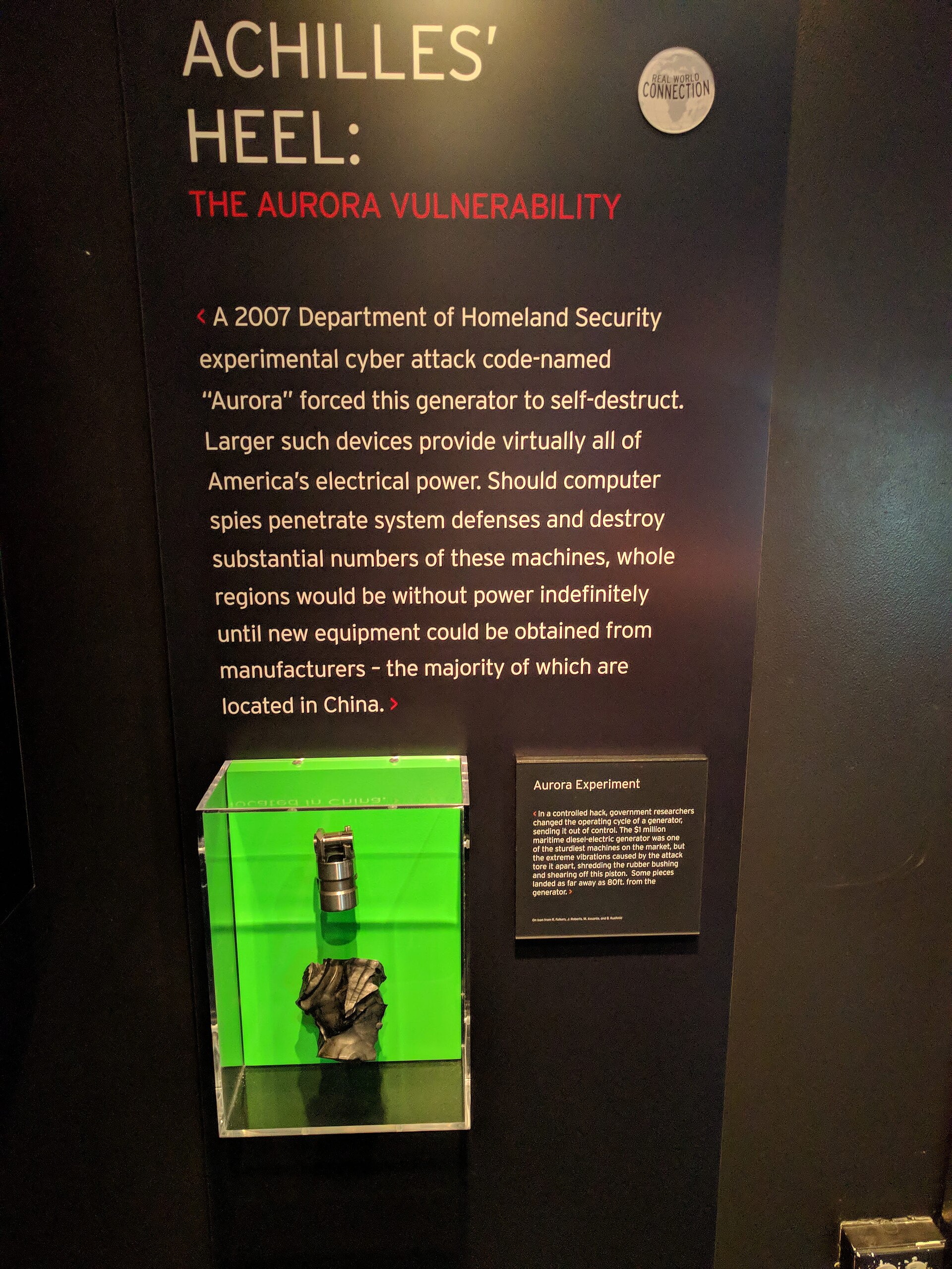 Ali ni sam taj napad nije trebao biti previše šokantan jer su Amerikanci još 2007. napravili tzv. Aurora Generator test gdje su pokazali kako se dizelski generator može uništiti s par redova računalnog koda. Ovo je postala javna informacija 2010. kad je North American Electric Reliability Corporation (NERC) upozorio industriju.